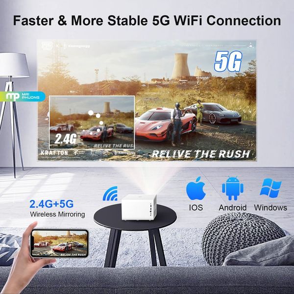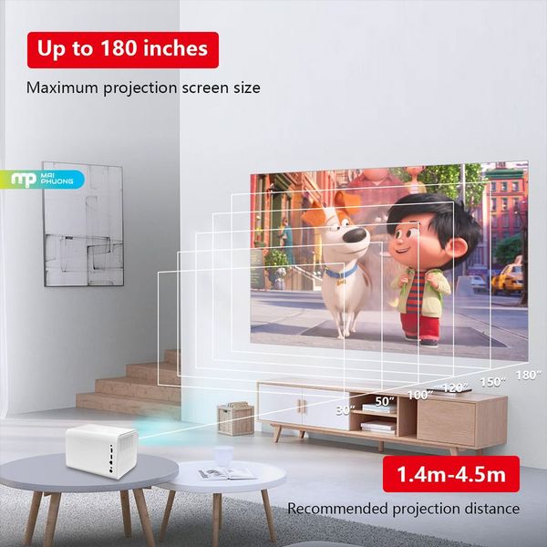 Máy chiếu Trackolor J5 sử dụng độ phân giải gốc 1920x1080, hỗ trợ giải mã video 4K, cho hình ảnh rõ nét, chi tiết và màu sắc cân bằng. Công nghệ LCD kết hợp độ sáng 350 ANSI giúp khung hình hiển thị tốt trong điều kiện ánh sáng nhẹ, phù hợp phòng khách, phòng ngủ hoặc không gian sinh hoạt gia đình. Kích thước chiếu tối đa lên đến 180 inch, mang lại cảm giác điện ảnh chân thực khi xem phim hoặc chơi game.