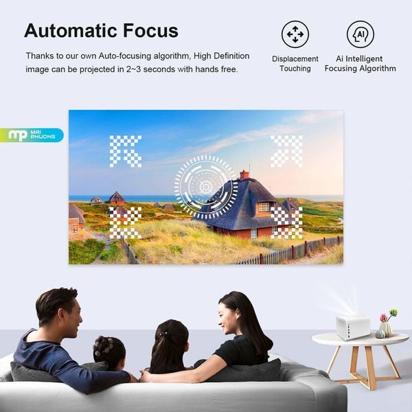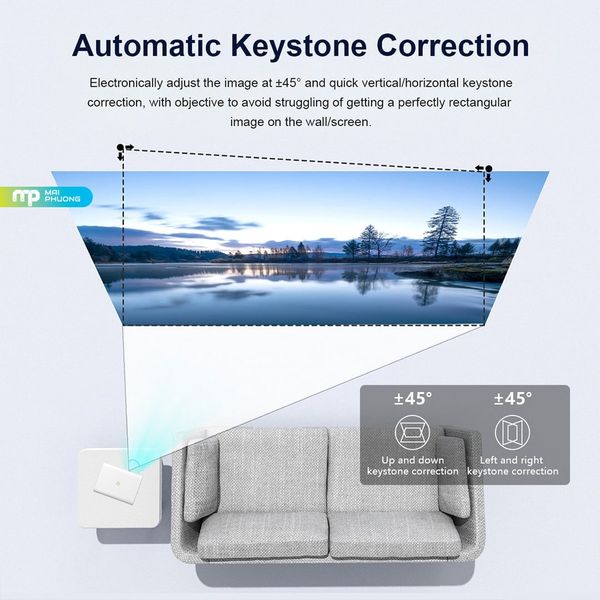 Máy được trang bị công nghệ Auto Focus AI, tự động lấy nét chỉ trong vài giây khi khởi động hoặc thay đổi vị trí đặt máy. Keystone Correction ±45° hỗ trợ căn chỉnh linh hoạt cả chiều dọc và ngang. Ngoài ra, các tính năng như nhận diện vật cản và tự động căn chỉnh theo màn chiếu giúp hình ảnh luôn được hiển thị chính xác, tiết kiệm thời gian thao tác.