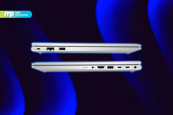 HP ProBook 450 G10 hỗ trợ Wi-Fi 6E và Bluetooth 5.3 cho kết nối không dây nhanh và ổn định. Các cổng kết nối gồm USB-C 3.2 Gen2 hỗ trợ sạc và xuất hình, USB-A 3.2 Gen1, HDMI 2.1, cổng LAN RJ-45 và jack tai nghe 3.5mm. Hệ thống cổng phong phú giúp dễ dàng kết nối màn hình rời, máy chiếu và mạng nội bộ trong môi trường văn phòng.