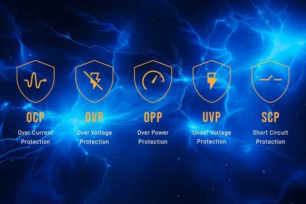 Nguồn được tích hợp đầy đủ lớp bảo vệ OCP, OVP, OPP, UVP và SCP, ngăn ngừa rủi ro quá tải, quá áp hay ngắn mạch.