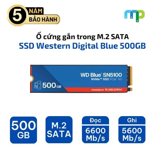 SSD WD Blue SN5100 500GB WDS500G5B0E là dòng ổ cứng NVMe PCIe Gen4 hiệu năng cao, hướng đến người dùng cần nâng cấp tốc độ cho PC và laptop đời mới. Với tốc độ đọc tối đa 6600MB/s và ghi 5600MB/s, sản phẩm giúp cải thiện rõ rệt khả năng khởi động hệ thống, mở ứng dụng nặng và xử lý dữ liệu dung lượng lớn.