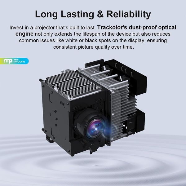 - Hệ thống quang học chống bụi giúp hạn chế đốm đen trên màn chiếu, tăng độ bền và tuổi thọ thiết bị.