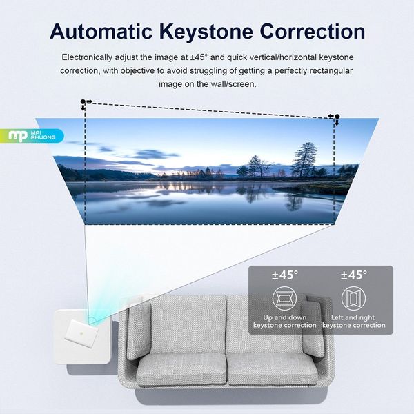- Keystone Correction ±45° cho phép điều chỉnh linh hoạt theo chiều dọc và ngang.
