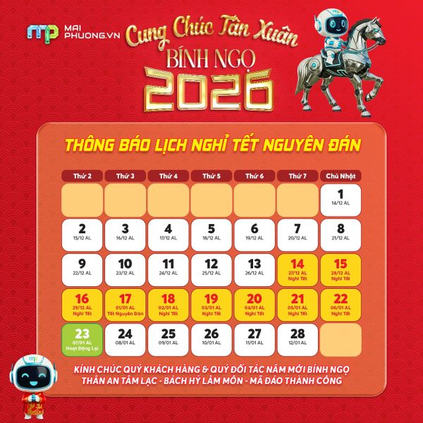Mai Phương Computer trân trọng thông báo đến Quý khách hàng và Quý đối tác lịch nghỉ Tết Nguyên Đán Bính Ngọ 2026 như sau: