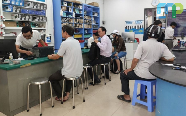 - Bước 4: Tiếp nhận sửa máy. Trong thời gian này khách hàng có thể ngồi đợi và xem trực tiếp.