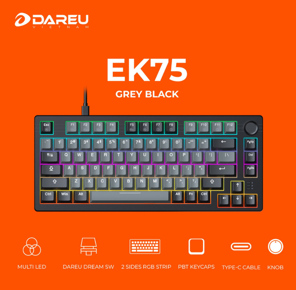 Bàn phím cơ Dare-U EK75 Grey Black – trải nghiệm gõ đỉnh cao cho game thủ, sinh viên và người sáng tạo