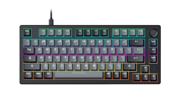 - Bàn phím DareU EK75 sử dụng layout 75% (81 phím), giữ đầy đủ phím chức năng quan trọng nhưng tiết kiệm không gian bàn làm việc. Phối màu Grey – Black mạnh mẽ, hiện đại, dễ kết hợp với nhiều phong cách setup.