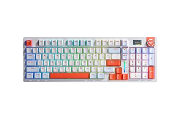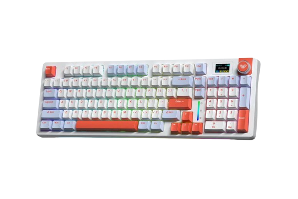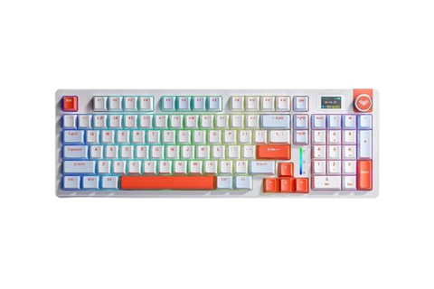 AULA S98 PRO nổi bật với phối màu độc đáo – xanh dương dịu, trắng tinh khôi và cam nổi bật. Layout 98 phím thông minh giúp tiết kiệm không gian nhưng vẫn giữ đủ các phím chức năng cần thiết, phù hợp cho cả làm việc và chơi game.