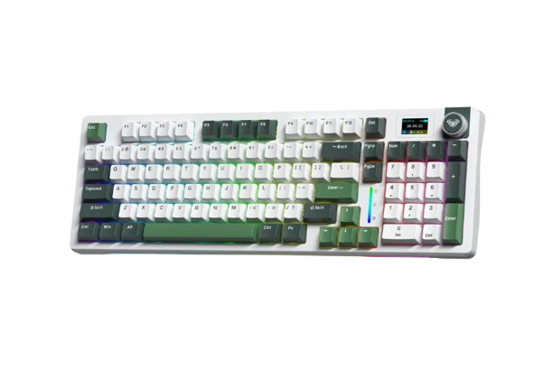 Bàn phím cơ gaming 3 mode AULA S98 PRO S9802 (màu Xanh lá + Trắng) là lựa chọn đẳng cấp cho cả game thủ và người dùng chuyên nghiệp. Thiết kế nổi bật với tông màu trẻ trung, hiệu suất cao và sự linh hoạt kết nối không dây hay có dây – tất cả đều gói trong một chiếc bàn phím 96 phím nhỏ gọn nhưng đầy đủ chức năng.