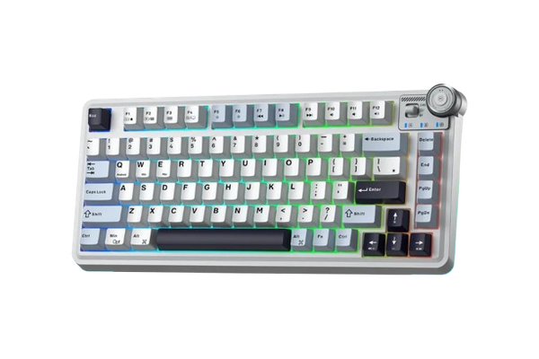 | Đặc điểm nổi bật | • Kết nối đa chế độ 3 Mode giúp chuyển đổi linh hoạt giữa PC, laptop, tablet. • Layout 75% gọn gàng, tiết kiệm không gian bàn mà vẫn đầy đủ phím chức năng. • Hỗ trợ hot-swappable switch — cho phép thay switch theo ý thích mà không cần hàn. • Cấu trúc gasket-mount & vật liệu cao cấp giúp trải nghiệm gõ mượt, êm và giảm tiếng ồn. • Phối màu “Tím + Trắng + Tím đậm” mang phong cách hiện đại — nếu đúng phiên bản thì sẽ rất nổi bật. |
