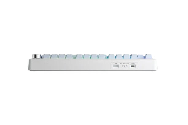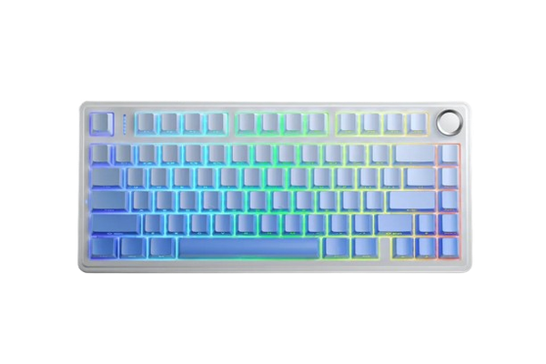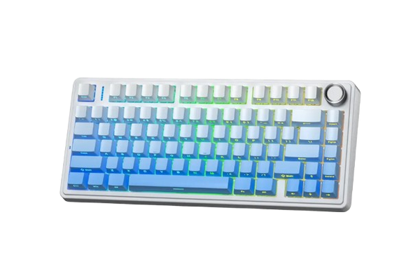 | Đặc điểm nổi bật | • Thiết kế phối màu Trắng + Xanh Dương Gradient – trẻ trung & hiện đại. • Kết nối linh hoạt 3 chế độ: có dây USB-C, không dây 2.4GHz và Bluetooth. • Switch Seiya / Reaper – cảm giác gõ Linear mượt mà và độ bền cao. • Hỗ trợ Hot-Swap toàn bàn phím, dễ dàng thay switch theo sở thích. • Cấu trúc gasket-mount với nhiều lớp đệm giảm âm giúp trải nghiệm gõ yên tĩnh và thoải mái. • Đèn RGB 16,8 triệu màu với nhiều hiệu ứng ánh sáng sống động. • Layout 75% nhỏ gọn (80 phím) – tiết kiệm diện tích bàn nhưng vẫn đầy đủ chức năng. • Độ bền phím lên đến 60 triệu lần bấm – thích hợp cả game thủ và dân văn phòng. |