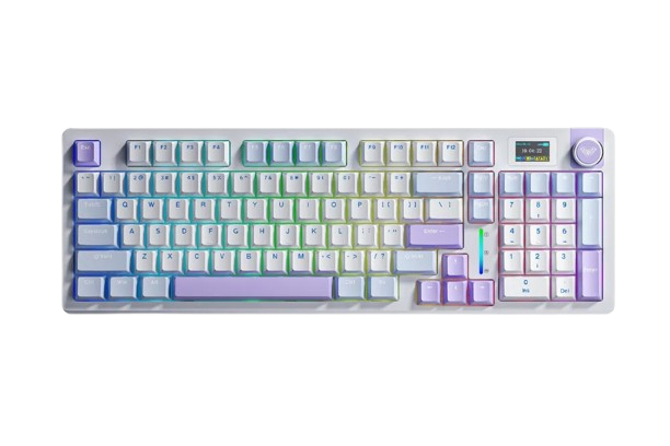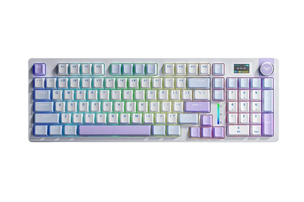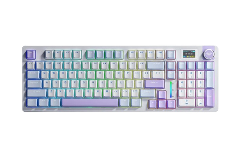 | Đặc điểm nổi bật | • Thiết kế phối màu Xanh dương + Trắng + Tím – nổi bật và hiện đại. • Kết nối 3 chế độ linh hoạt: dây USB-C, Wireless 2.4GHz & Bluetooth. • Switch Paleo dust cho cảm giác gõ mượt, linear và độ bền cao (~60 triệu lần nhấn) • Hot-swappable toàn bàn phím, dễ dàng thay switch không cần hàn. • Cấu trúc gasket-mount & lớp đệm giúp trải nghiệm gõ êm, giảm tiếng gõ. • LED RGB đa hiệu ứng, nhiều chế độ ánh sáng, tạo điểm nhấn cho setup của bạn. |