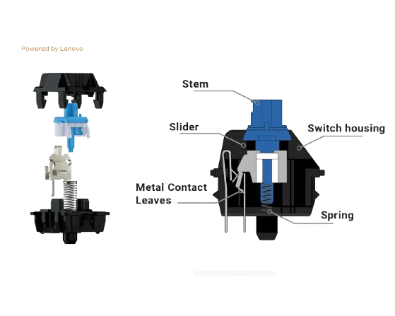 Phím cơ Blue cho cảm giác gõ rõ ràng, phản hồi xúc giác tốt.