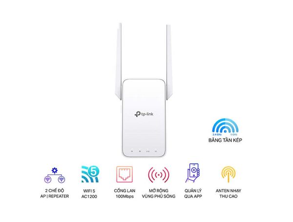 Tích hợp tự nhiên và mượt mà nhóm từ khóa chính: kết nối wifi ổn định, mở rộng phạm vi wifi, tăng cường tín hiệu không dây và các từ khóa ngữ nghĩa liên quan như: ứng dụng quản lý qua điện thoại Tether, cổng Ethernet 10/100Mbps, chế độ Access Point, chế độ Range Extender, bảo mật mạng, DFS và quản lý truy cập người dùng. Tất cả được thiết kế để bạn có trải nghiệm internet liền mạch mà không phải lo lắng về cấu hình phức tạp.