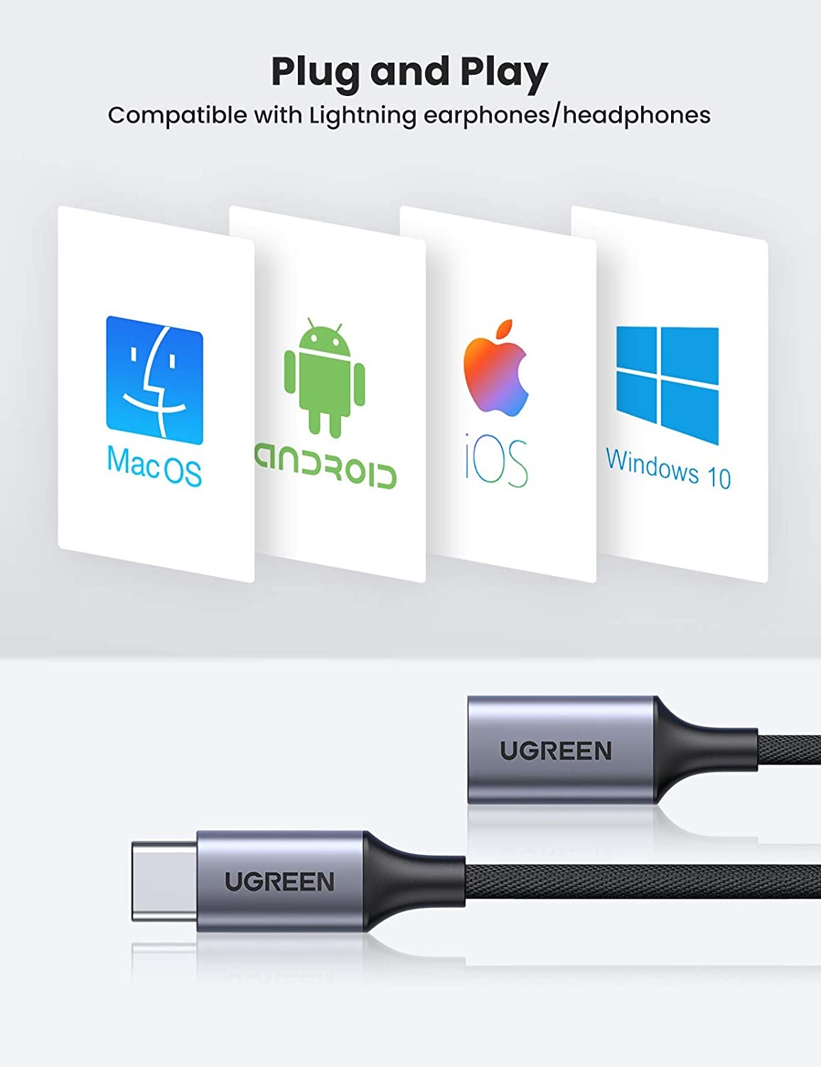 Cáp Chuyển Âm Thanh Type-C Sang Lightning Ugreen 70953 US342 – Full Chức Năng, Chip MFi, Dây Bọc Dù