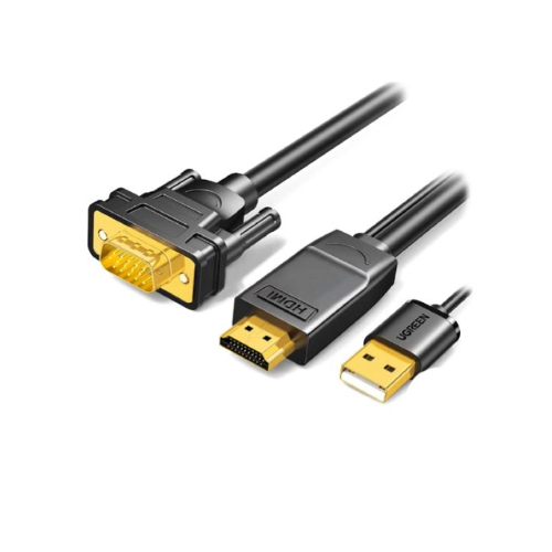 - Cáp chuyển đổi HDMI to VGA cao cấp chính hãng Ugreen 30449 có hỗ trợ cổng Micro USB để cấp nguồn 5V bổ sung, thường hay sử dụng khi máy tính bảng thiếu nguồn hoặc cáp dài tín hiệu truyền đi bị kém.