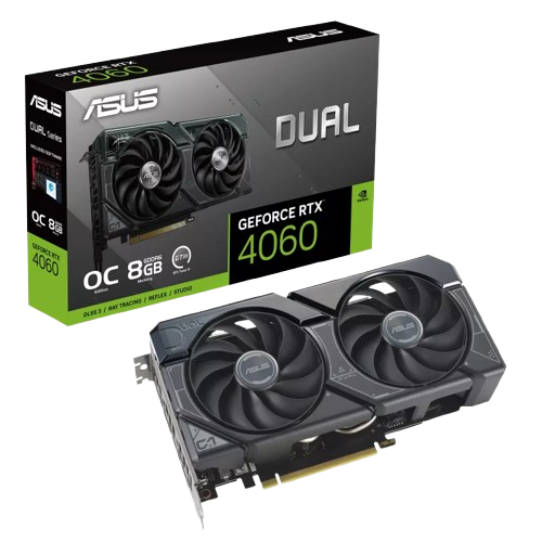 Card màn hình ASUS Dual GeForce RTX™ 4060 8GB GDDR6 (DUAL-RTX4060-8G) Hiệu năng AI mạnh mẽ – DLSS 3 – Thiết kế nhỏ gọn 2.5 Slot