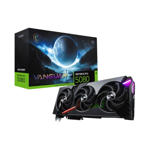 MSI GeForce RTX 5080 Vanguard SOC 16 GB GDDR7 là lựa chọn tối ưu cho game thủ và creator cần GPU mạnh mẽ, làm mát hiệu quả, thiết kế độc đáo và đầy phong cách. Dù bạn đang xây dựng PC 4K/8K hay đang sản xuất nội dung sáng tạo, đây là card hoàn hảo mang lại trải nghiệm mượt mà, đẹp mắt và đáng tin cậy.