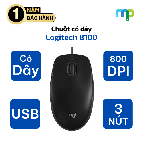 Chuột Logitech có dây B100 là một trong những mẫu chuột đáng mua nhất trong phân khúc phổ thông. Thiết kế cơ bản nhưng hiệu quả, chất lượng đến từ thương hiệu uy tín, phù hợp cho mọi nhu cầu sử dụng hàng ngày từ văn phòng đến học tập.