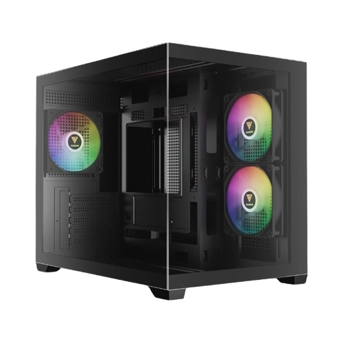 Case AURA GC10M ARGB là micro-tower dual chamber với thiết kế panoramic kính cường lực sang trọng, mang đến góc nhìn toàn cảnh đẹp mắt. Trang bị sẵn 3 quạt ARGB 120mm, hỗ trợ đồng bộ qua mainboard hoặc nút LED control, đồng thời cho phép nâng cấp tới 9 quạt và radiator tản nhiệt khí/nước. Case hỗ trợ GPU dài tới 400mm, mainboard Mini-ITX/Micro-ATX, thiết kế 2 khoang giúp quản lý cáp gọn gàng. Bảng I/O tiện dụng gồm USB 2.0, USB 3.0, LED switch và cổng audio. Với mức giá hợp lý, đây là lựa chọn lý tưởng cho game thủ và người đam mê PC muốn build hệ thống vừa mạnh mẽ vừa thẩm mỹ.