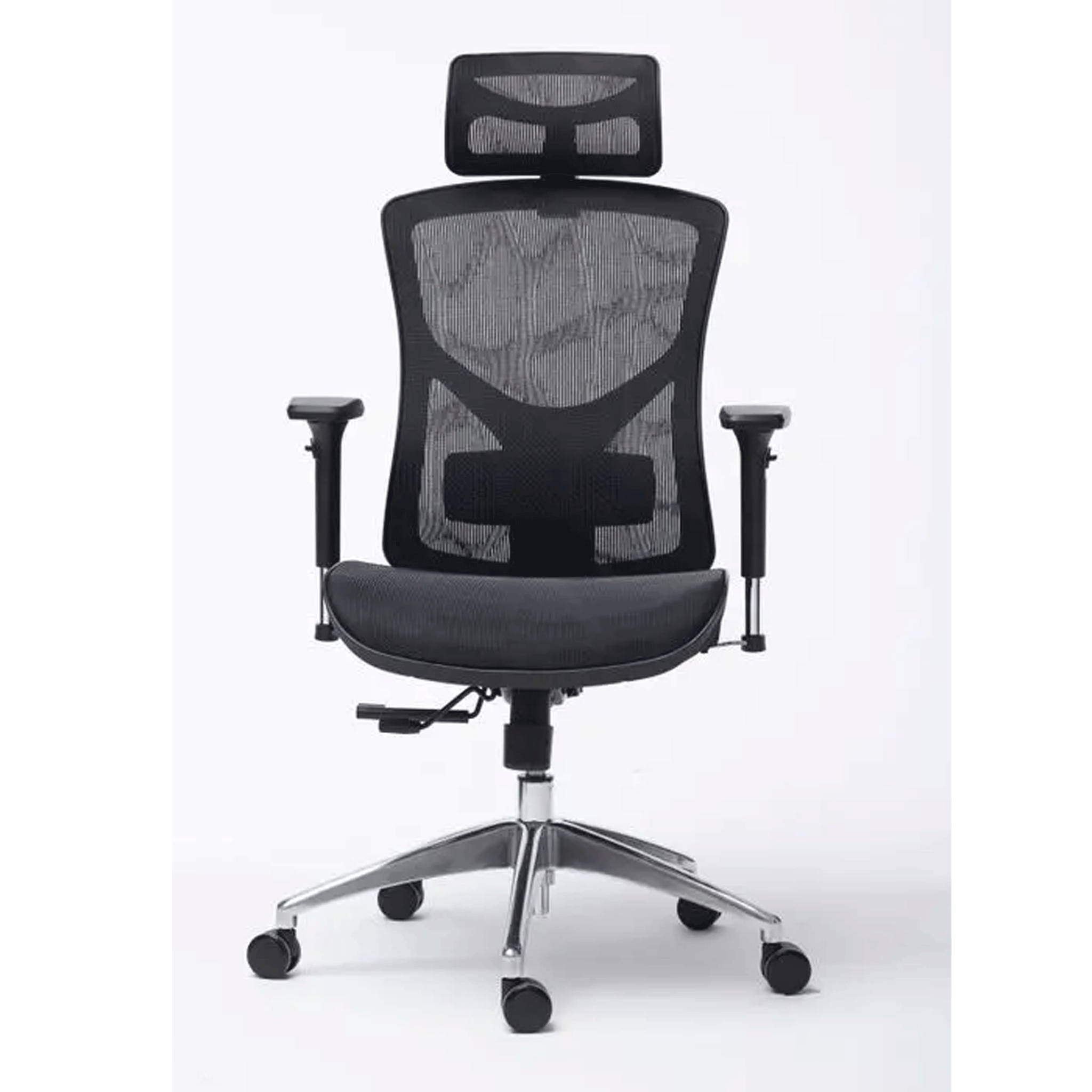 - Chân ghế hợp kim nhôm và bánh xe PU êm ái, di chuyển nhẹ nhàng trên mọi mặt bàn và sàn làm việc.