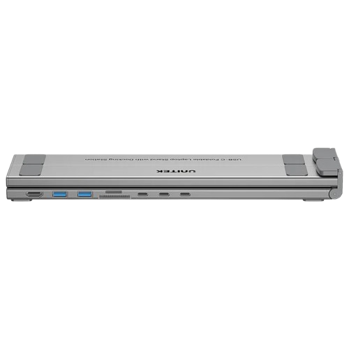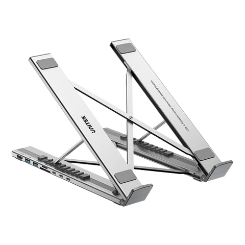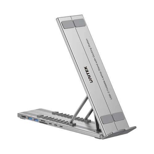 UNITEK D1137AGY01 USB-C Foldable Laptop Stand with Docking Station là giải pháp 7-trong-1 kết hợp hoàn hảo giữa giá đỡ công thái học và hub Type-C đa năng. Sản phẩm hỗ trợ xuất màn hình 4K@60Hz, truyền dữ liệu 5Gbps, sạc nhanh Power Delivery 100W và khe đọc thẻ SD/MicroSD – mang đến không gian làm việc gọn gàng, chuyên nghiệp và linh hoạt ở bất cứ đâu.