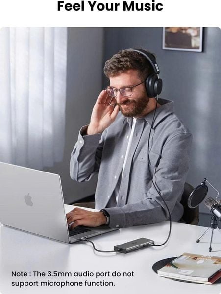 Hub tích hợp jack audio 3.5mm để kết nối tai nghe hoặc loa ngoài.
