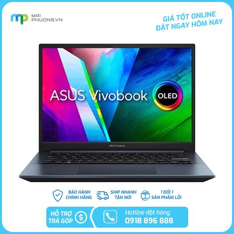 Laptop Asus Vivobook Pro 14 OLED đem đến trải nghiệm hình ảnh đặc biệt ấn tượng. Màn hình 14 inch OLED viền siêu mỏng NanoEdge độc quyền từ Asus, độ phân giải WQXGA+ (2880 x 1800) mang đến hình ảnh có độ tương phản và ánh sáng cao, tạo màu đen sâu hơn. Bên cạnh đó tỉ lệ khung hình Wide 16:10 cũng giúp cho người dùng trải nghiệm màn hình giống như đang xem phim màn ảnh rộng chiếu tại rạp vậy.