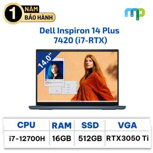 Dell Inspiron 14 Plus 7420 là chiếc laptop dành cho những người dùng chuyên nghiệp cần một thiết bị mạnh mẽ, di động và thời trang. Được trang bị bộ vi xử lý Intel Core i7 thế hệ thứ 12 mới nhất, RAM 16GB, ổ cứng SSD 512GB và card đồ họa NVIDIA GeForce RTX 3050, Inspiron 14 Plus 7420 dễ dàng đáp ứng mọi nhu cầu công việc và giải trí của bạn, từ xử lý văn bản, bảng tính, lập trình đến chỉnh sửa ảnh, video và chơi game AAA.