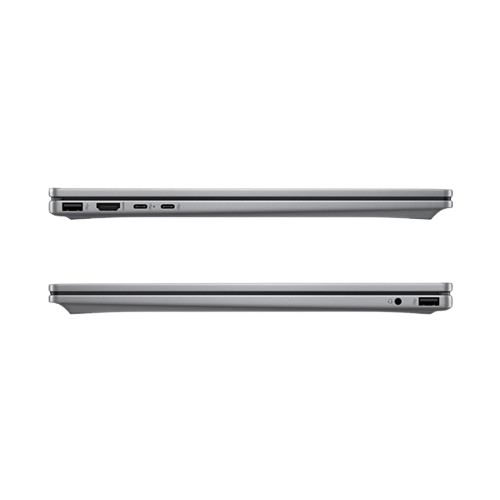 - HP OmniBook X Flip 16 sở hữu lớp vỏ kim loại màu bạc mờ, tinh tế, ánh kim nhẹ tạo cảm giác cao cấp, các đường nét bo cong mềm mại mang lại cảm giác chắc chắn và sang trọng.