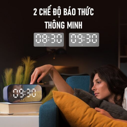Sản phẩm được thiết kế kiêm đồng hồ báo thức, màn hình tráng gương hiển thị LED rất đẹp mắt. Thời gian hiển thị lên tới 80 giờ, điều chỉnh 3 mức độ sáng.