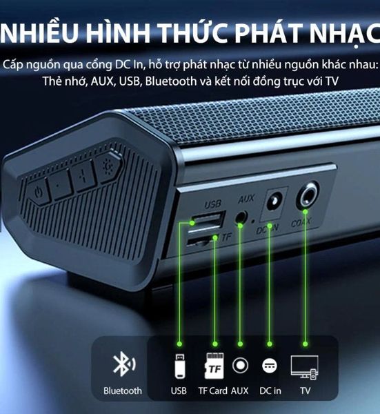 | Kết nối hỗ trợ | ~Bluetooth, AUX, USB, thẻ TF, Coaxial |