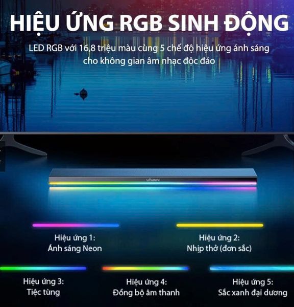LED RGB với 16,8 triệu màu cùng 5 chế độ hiệu ứng ánh sáng cho không gian âm nhạc độc đáo