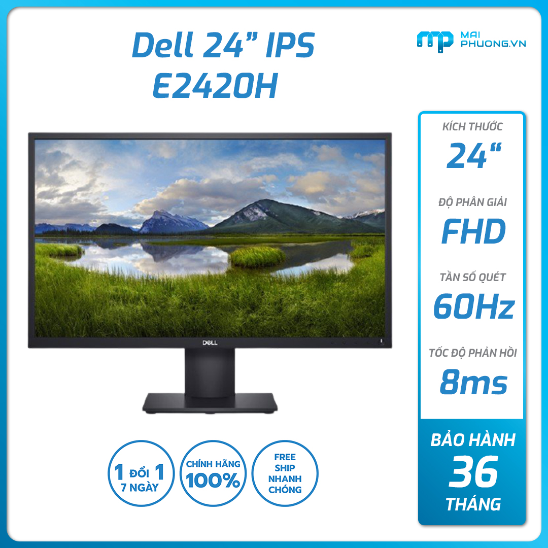 Dell E2420H được thiết kế với kiểu dáng mỏng để tối đa hóa không gian máy tính để bàn. Tấm nền IPS (In-Plane Switching) hỗ trợ độ phân giải Full HD (1920 x 1080) với tần số quét 60 Hz với tối đa 16,7 triệu màu và có thời gian phản hồi 5 ms (GtG), độ sáng 250 cd/ m² và tỷ lệ tương phản tĩnh 1000:1 để hiển thị tài liệu, ảnh và video với độ trung thực rõ ràng như pha lê.