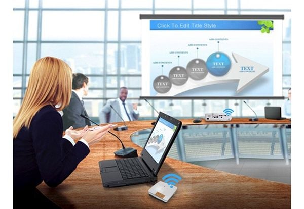 Chiếu không dây tùy chọn qua dongle Wi-Fi, kết nối dễ dàng với máy tính bảng và thiết bị di động iOS/Android mà không cần cáp HDMI hay VGA.