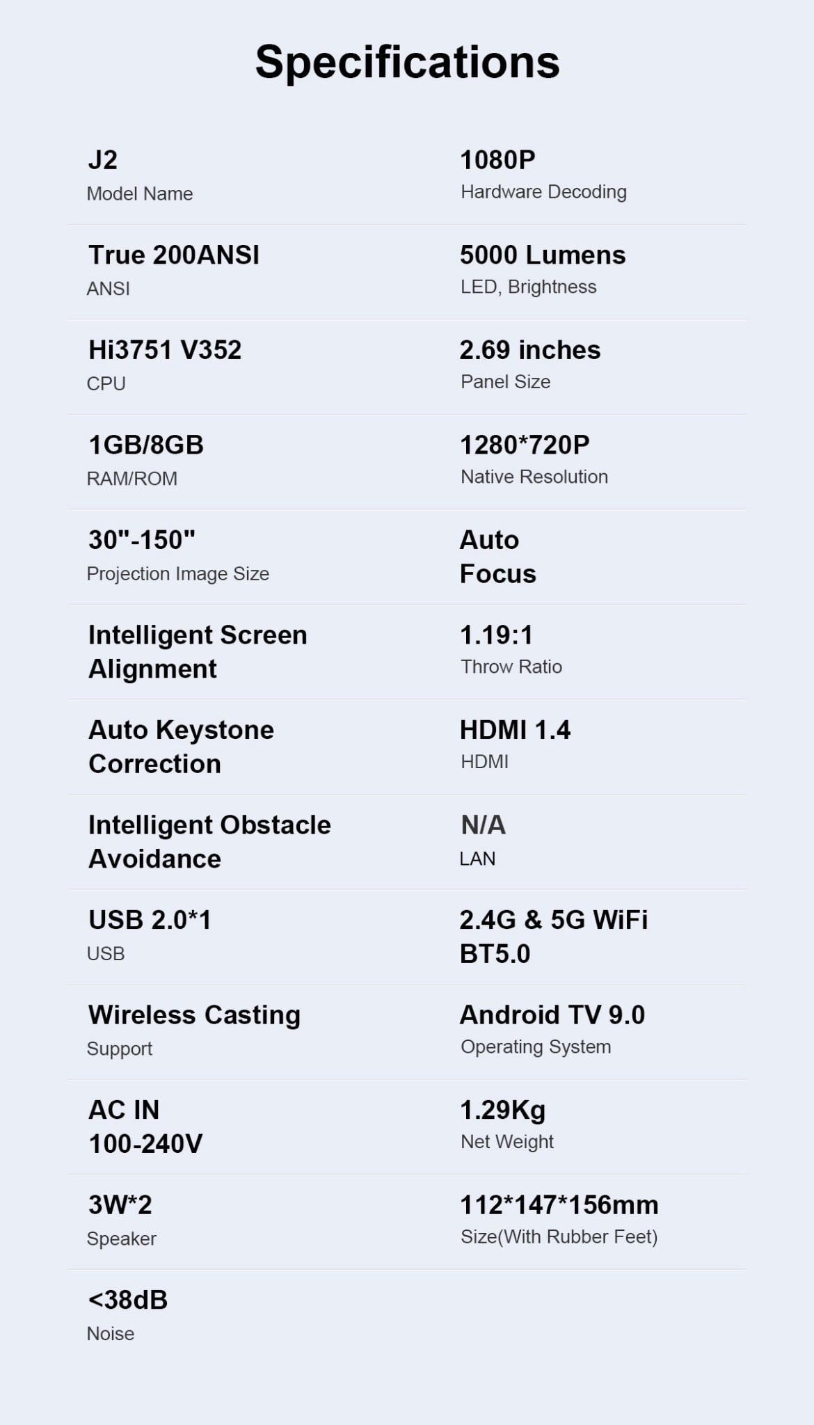 | Tên sản phẩm | Trackolor J2 FHD Mini Projector |