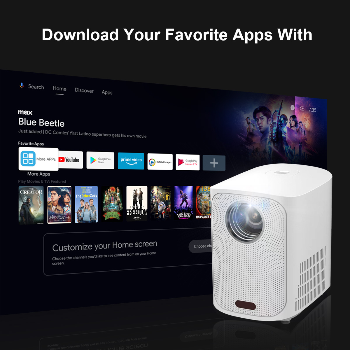 Tích hợp hệ điều hành Android thông minh, người dùng có thể tải trực tiếp các ứng dụng như YouTube, Netflix, Prime Video, Google Play Movies & TV, và nhiều nền tảng khác.