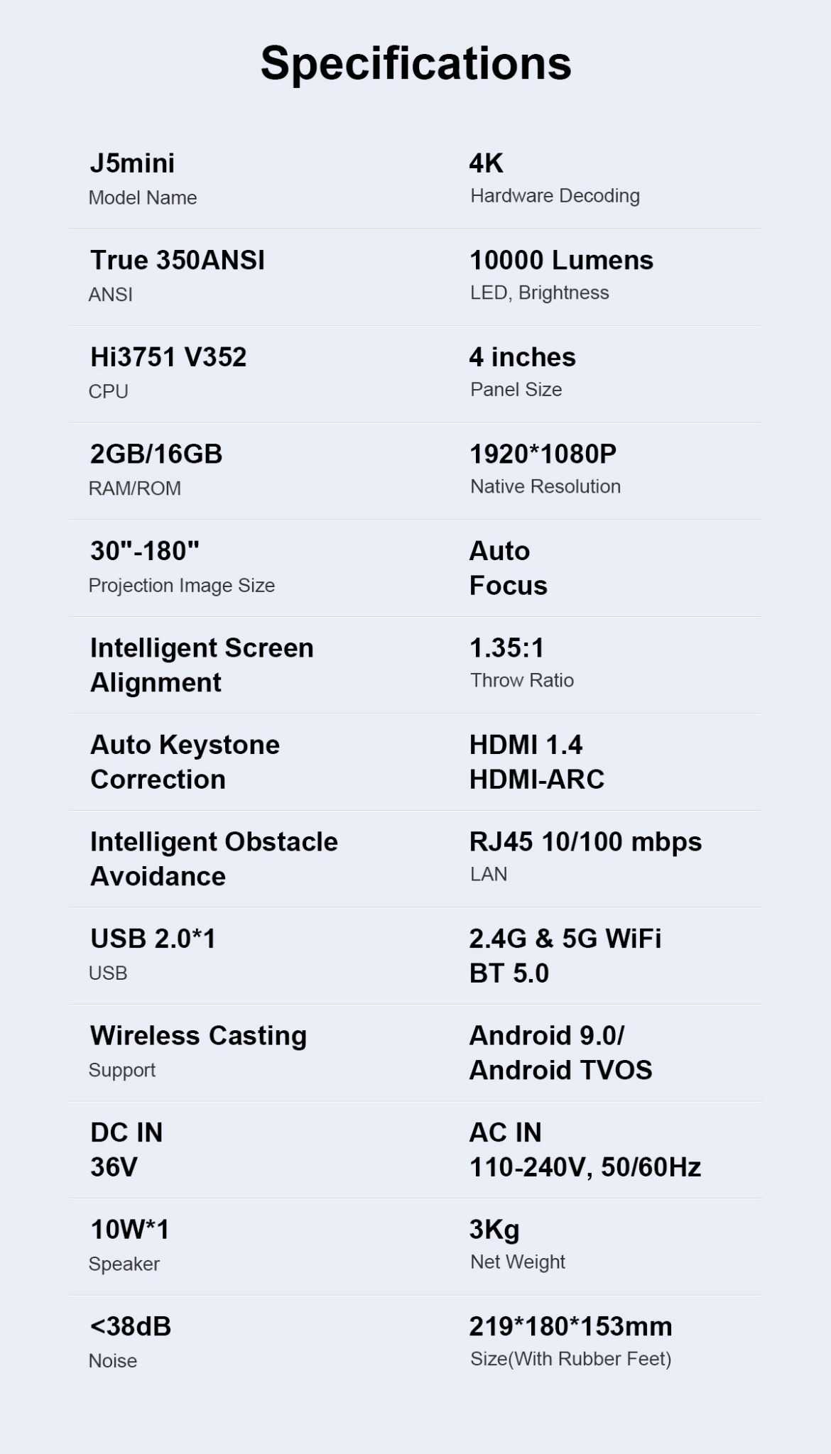 | Tên sản phẩm | Trackolor J5 Mini 4K Smart Projector |
