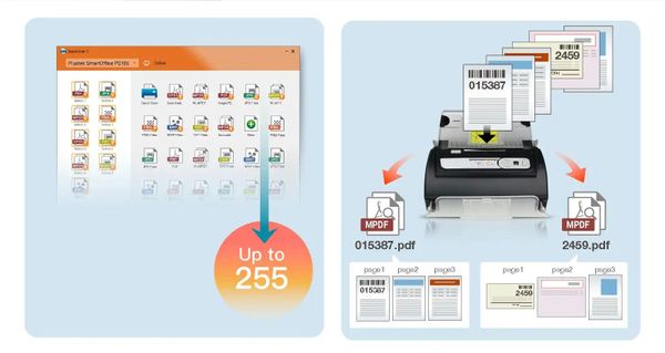 🔹 Quản lý thông minh: Tích hợp OCR, PDF có thể tìm kiếm, nhận diện mã vạch, tự động đặt tên tệp và lưu vào FTP/NAS.