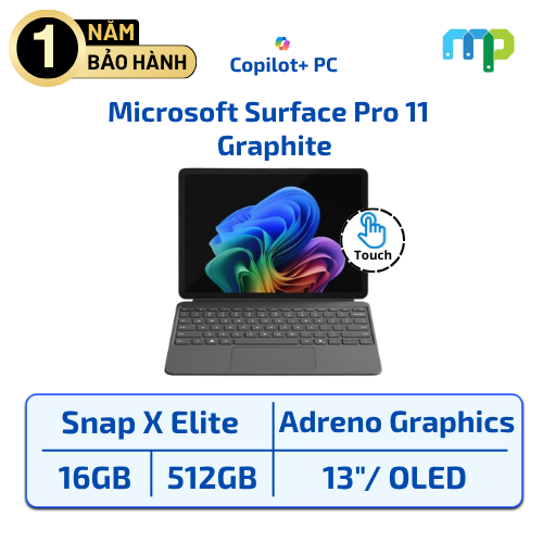Surface Pro 11 Snapdragon X Elite OLED/16GB/512GB (Chính hãng) là chiếc Copilot+ PC cao cấp của Microsoft, kết hợp hoàn hảo giữa hiệu năng AI mạnh mẽ, màn hình OLED cao cấp và thiết kế di động linh hoạt.