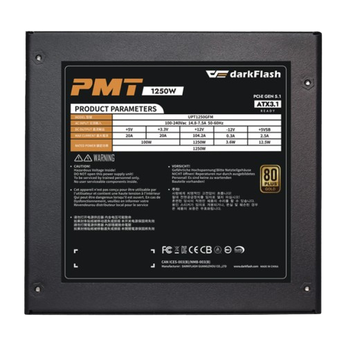 DarkFlash PMT 1250-1250W GOLD ATX 3.1, PCIe 5.1 là lựa chọn hoàn hảo cho những ai muốn đạt được hiệu năng tối đa, độ bền vượt trội và sự an toàn tuyệt đối cho hệ thống PC của mình.