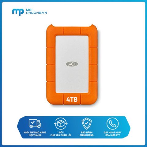 Ổ Cứng Di Động Chống Sốc Lacie Rugged Mini 4TB USB-C - LAC9000633 với tính năng đặc biệt: chống sốc 1,2m, chịu lực lăn 1 tấn, chống nước mưa giúp gia tăng tuổi thọ cho sản phẩm