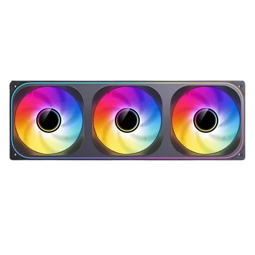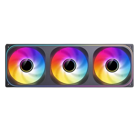 | Đặc điểm nổi bật | - Thiết kế ấn tượng ở cả tâm và viền quạt, tạo chiều sâu ánh sáng độc đáo. - Bộ ba quạt nối liền dạng, dễ dàng lắp đặt cho radiator hoặc vỏ case gaming cao cấp. - Độ ồn thấp, vận hành êm ái, thích hợp cho các hệ thống cần làm mát mạnh nhưng vẫn đảm bảo yên tĩnh. |