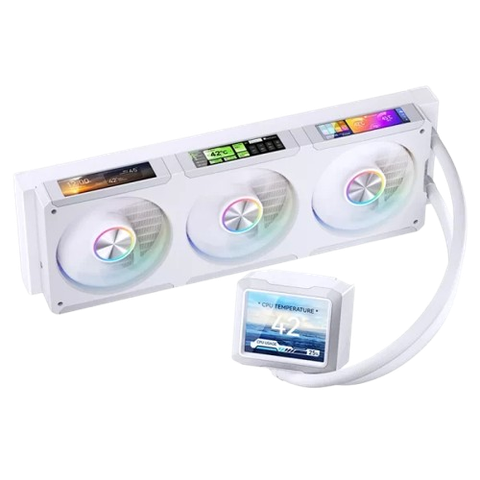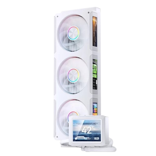 | Đặc điểm nổi bật | - Thiết kế 4 màn hình tích hợp độc đáo kết hợp giữa công năng & thẩm mỹ - Màn hình có thể tùy chỉnh nội dung: thông số hệ thống, ảnh, video - Radiator 360 mm + 3 quạt hiệu suất cao hỗ trợ tản nhiệt mạnh mẽ - Quạt điều khiển PWM, bơm tốc độ cao - Hỗ trợ đa dạng socket Intel & AMD - Nắp bơm xoay & tháo rời để điều chỉnh hướng màn hình khi lắp đặt - Phù hợp cho hệ thống gaming cao cấp hoặc PC showcase với yêu cầu làm mát + hiển thị đẹp mắt |