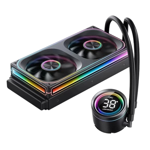 - Trang bị hai quạt ARGB chống ồn hoạt động êm ái, duy trì hiệu suất tản nhiệt cao trong khi vẫn đảm bảo không gian yên tĩnh.