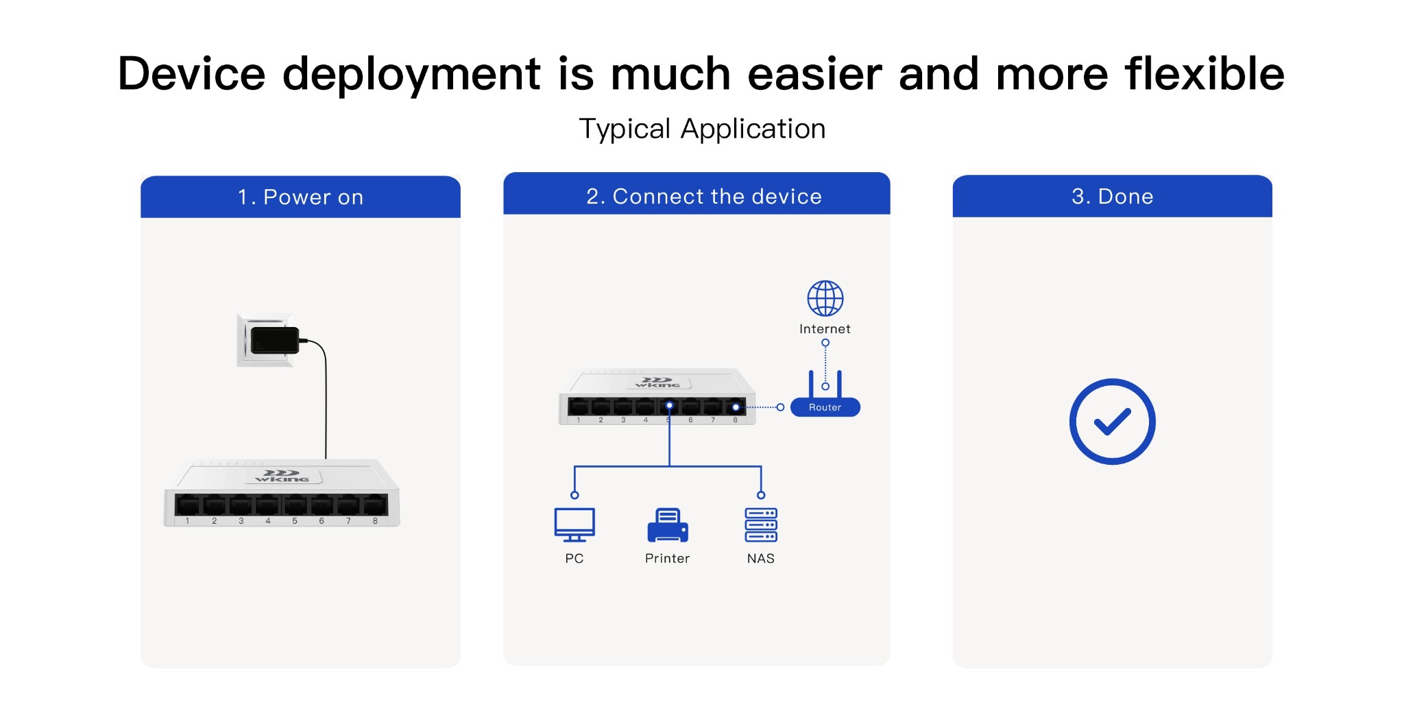 Wiking WK-S308 là lựa chọn tuyệt vời cho người dùng và doanh nghiệp cần switch Gigabit 8 cổng, hoạt động êm ái, bền bỉ và dễ dùng. Nhờ khả năng Plug & Play, thiết kế không quạt và chi phí tối ưu, sản phẩm phù hợp cho cả hệ thống mạng văn phòng, cửa hàng, trường học đến hộ gia đình. Đây là thiết bị vừa tính năng – hiệu suất – giá thành đều vượt trội trong phân khúc.