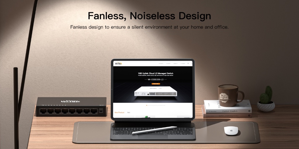Thiết kế không quạt giúp switch vận hành hoàn toàn yên tĩnh.