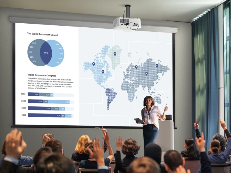 Giáo dục: Giúp giảng viên trình chiếu bài giảng, tài liệu và video trực tiếp từ laptop hoặc smartphone.
