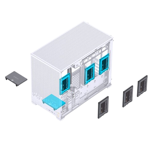 Ổ cứng: Tối đa 4 ổ SSD 2.5" hoặc 2 ổ HDD 3.5" (vị trí linh hoạt, chia sẻ không gian).