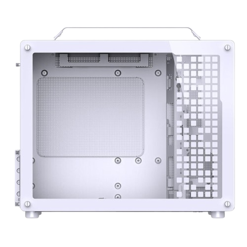 - Phần tay xách dày 2mm có thể tháo rời, giúp người dùng dễ dàng mang máy đi di chuyển hoặc tham gia các sự kiện LAN party, trong khi vẫn đảm bảo an toàn cho phần cứng bên trong. Tay cầm và thân case được liên kết bằng móc khóa, không cần vít, nên tháo lắp nhanh gọn mà không cần dụng cụ.